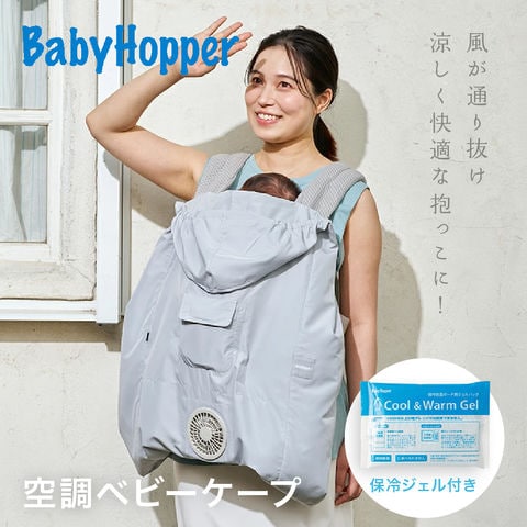\電池4本付/ベビーホッパー 空調ベビーケープ 保冷ジェル付 ベージュ|BabyHopper エルゴベビー対応 抱っこ紐ケープ ファン付きケープ 暑さ対策 熱中症対策 UVカット