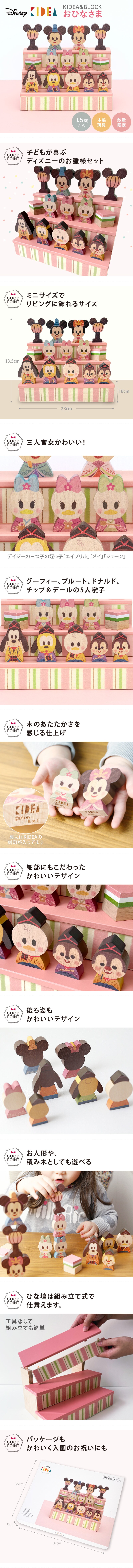 ディズニー KIDEA(キディア) ひなまつり 雛祭り KIDEA&BLOCK(ブロック)|ディズニー 木のおもちゃ ひな人形 初節句