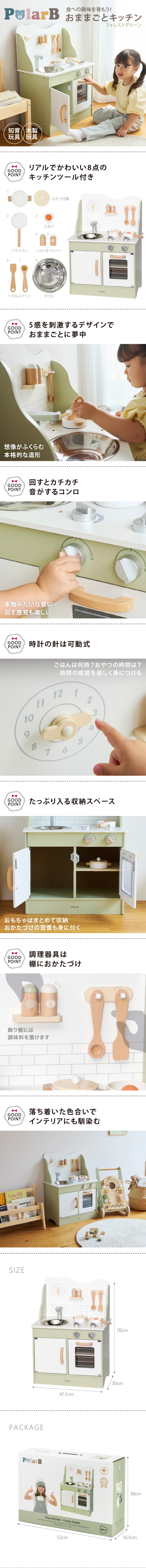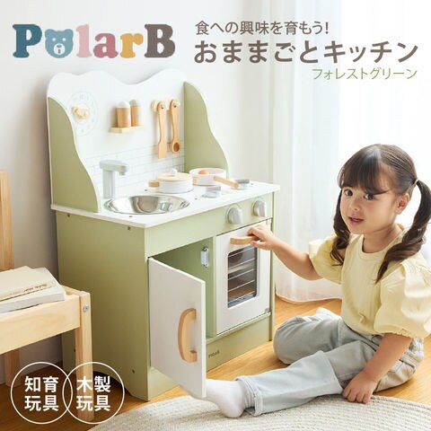 おかたづけボックス付 ポーラービー おままごとキッチン フォレストグリーン|知育玩具 木製 おままごと|T0Y 入園特集