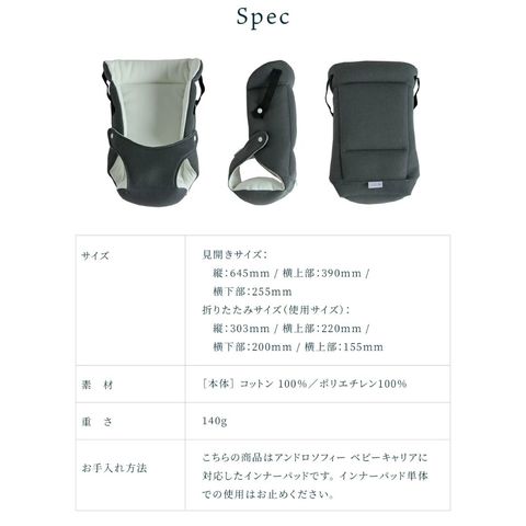 \新登場/アンドロソフィー 抱っこ紐用 新生児 インナーパッド グレー|インファント インサート 抱っこひも ベビーキャリア 日本製 土屋鞄