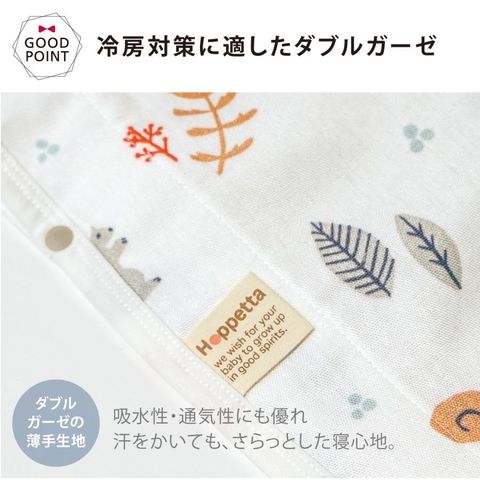 Hoppetta(ホッペッタ) bambooスリーパーベビーサイズ リス|スリーピングベスト 出産祝い ギフト 寝冷え 赤ちゃん 春夏 袖なし 新生児