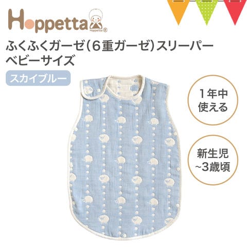 Hoppetta(ホッペッタ) ふくふくガーゼ(6重ガーゼ)スリーパー(ベビーサイズ) スカイブルー|スリーピングベスト ギフト オールシーズン 袖なし 新生児