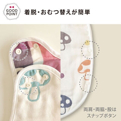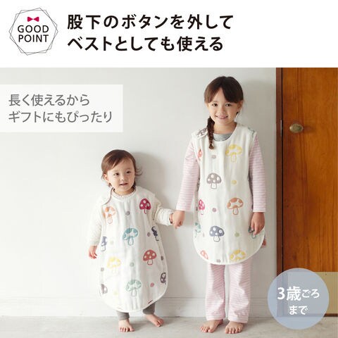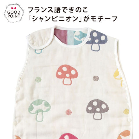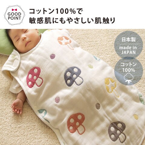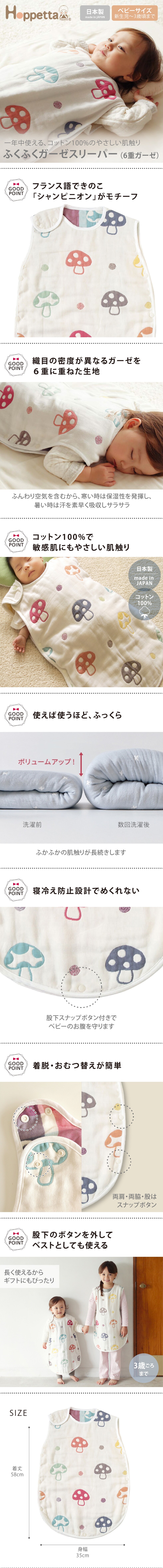Hoppetta(ホッペッタ) ふくふくガーゼ(6重ガーゼ)スリーパー(ベビーサイズ) シャンピニオン|スリーピングベスト ギフト オールシーズン 袖なし 新生児