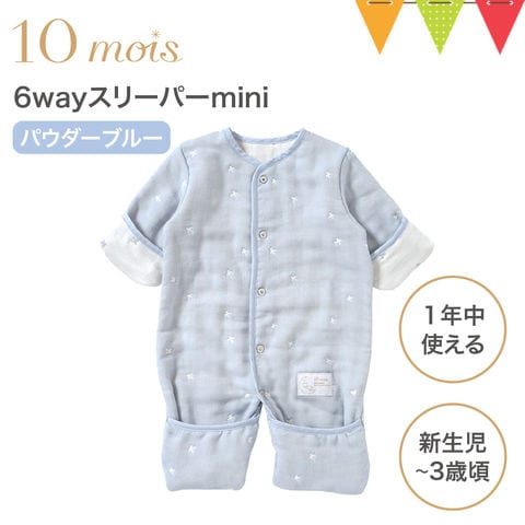 10mois(ディモワ) 6way スリーパーmini パウダーブルー|FICELLE フィセル ディモア スリーパー スリーピングベスト 新生児 半そで おくるみ スワドル 日本製