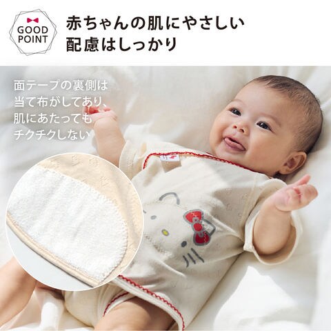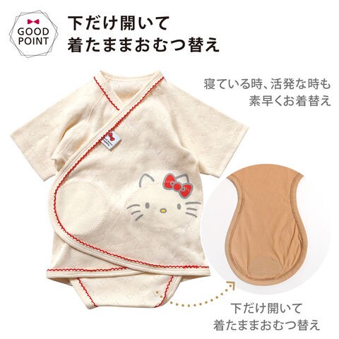 Hoppetta(ホッペッタ) HELLO KITTY × Hoppetta PATTO SATTO HADAGI パターンメッシュ 50-60cm|キティ フィセル ベビー 新生児 パッとサッと 肌着 出産祝