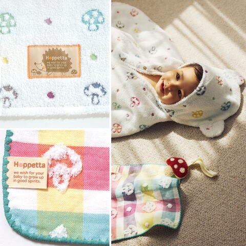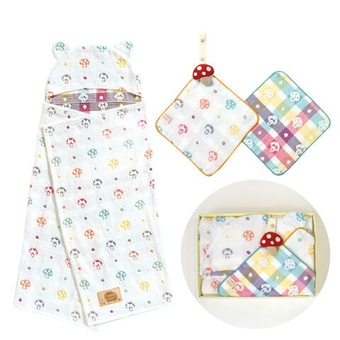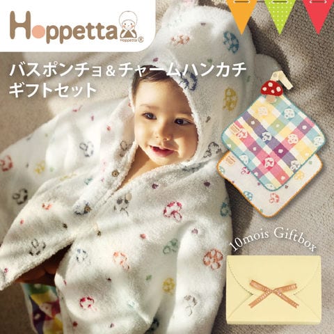 Hoppetta バスポンチョ&チャームハンカチ シャンピニオン ギフトセット シャンピニオン|ホッペッタ ギフト 出産祝 出産準備 赤ちゃん ベビーギフト