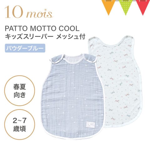 10mois(ディモワ) PATTO MOTTO COOL キッズ スリーパー メッシュ付 パウダーブルー|10mois ディモワ スリーパー キッズスリーパー 寝冷え 動きやすい 春夏