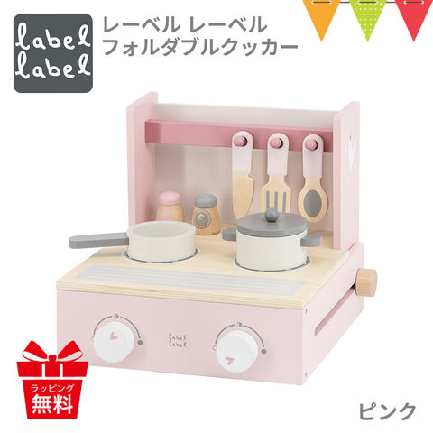 レーベルレーベル フォルダブルクッカー ピンク|おままごと キッチン ごっこ遊び エデュテ 室内遊び 知育玩具 木のおもちゃ 誕生日祝