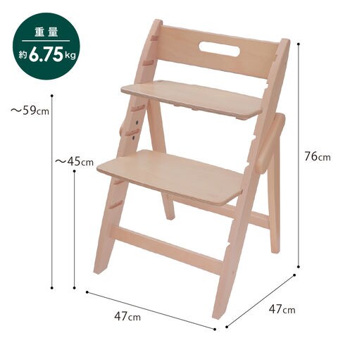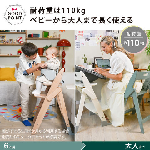 ●折りたたんだ時の奥行:13cm(エクステンション・板なし)、22cm(エクステンション付き・板なし)、34cm(エクステンション付き・板付き) ●重量: 約6.75kg ●耐荷重: スターター・セットあり:~15kgまで/スターター・セットなし:~110kgまで ●素材: 天然木(ビーチ材)、合板(ビーチ材) ※表面加工:水性塗装 ●対象年齢: スターター・セットあり:腰がすわる6か月頃から/スターター・セットなし:3歳(体重15kg)から ●お手入れ方法: 【日常的なお手入れ】●柔らかい乾いた布で拭いてください。●固く絞った濡れ布巾を使用する場合には、水拭き後は乾拭きを行い、水分を完全に拭き取ってください。/【汚れがひどいとき】●水で薄めた中性洗剤に布巾を浸し、固く絞ってから拭いてください。水拭き後は乾拭きを行い、洗剤・水分を完全に拭き取ってください。/【禁止事項】●研磨剤・溶剤(ベンジン・シンナー等)は使用しないでください。●水滴や濡れた布巾を木部に放置しないでください。●アルコールを含む除菌シートや体を拭くためのシートで製品を拭かないでください。塗装が剥がれたり変色・変形するなど、製品が劣化する可能性があります。/【保管方法】●直射日光の当たらない湿度の低い場所で保管してください。 ※【使用上の注意】●天然木を使用しているため、木目や色等は製品毎に異なります。あらかじめご了承ください。●木製部は温度や湿度の変化、および使用保管状況により変化・劣化することがあります。●フローリングでの使用は床に傷が付くおそれがあります。●フードトレイを本製品に取り付けるためには、スターター・セットのバンパーバーとバックレストが必要です。別売りのアクセサリーをお買い求めください。●お子さまの足が床に直接届くようになる、または大人の方が使用する場合はフットレストをシートとしてご使用ください。●エクステンションは必要に応じて使用する着脱可能な付属品です。本製品を持ち上げたり移動する際、エクステンションが外れることがあります。 ●メーカー所在国: ドイツ ●生産国: 中国 |