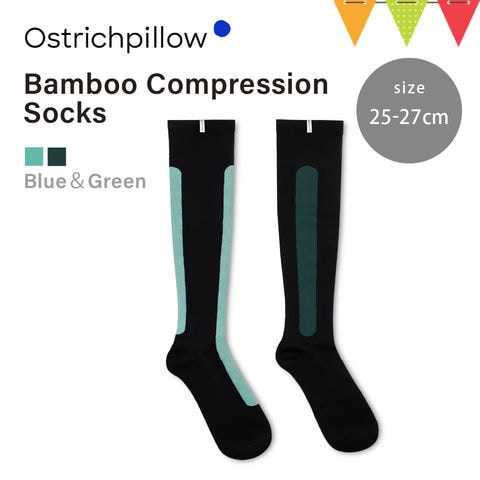 Ostrichpillow(オーストリッチピロー) バンブー着圧ソックス Blue&Green(25-27cm)|むくみ解消 引き締め マタニティ