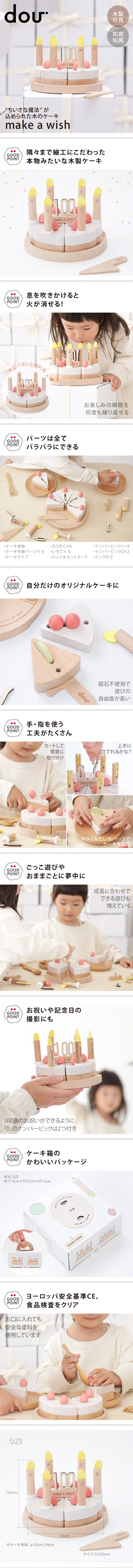 DOU?(ドウ) make a wish(ちいさな魔法が込められた木のケーキ)|ケーキセット 知育玩具 ごっこ遊び 木製 おままごと ショートケーキ 100日祝 ギフト
