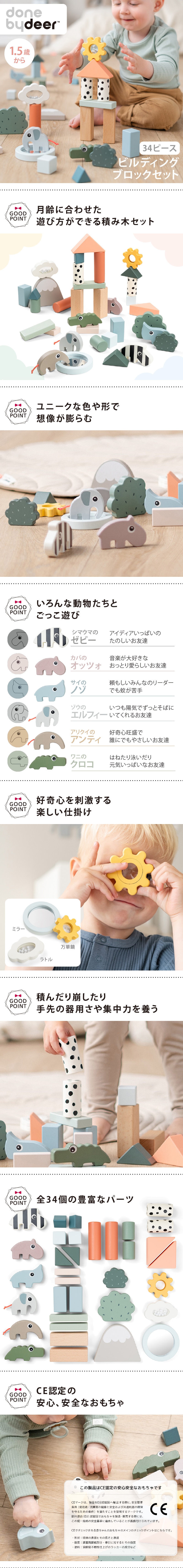 ダンバイディア ビルディングブロックセット34ピース ディアフレンズ|Done by Deer ダンバイディア― 木製 知育玩具 おしゃれ 北欧