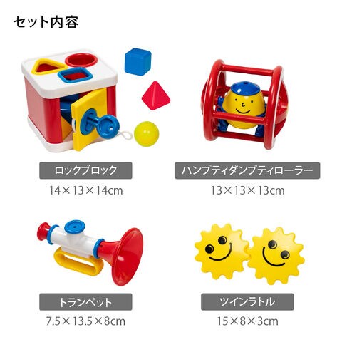 ●サイズ: 30.5×24.5×13cm ●重量: 1042g ●素材: ABS、ナイロン、ポリプロピレン ●対象年齢: 6ヶ月頃から ●お手入れ方法: 汚れた場合は固く絞ったタオルで拭き、よく乾燥させてください。 ※煮沸消毒、液体消毒は材質の変質の原因になりますので避けてください ※ウェットティッシュやおしりふきなどのご使用はお控えください ※ ツインラトル、ハンプティダンプティ、ロックブロック、トランペット ●メーカー所在国: イギリス ●生産国: 中国 |