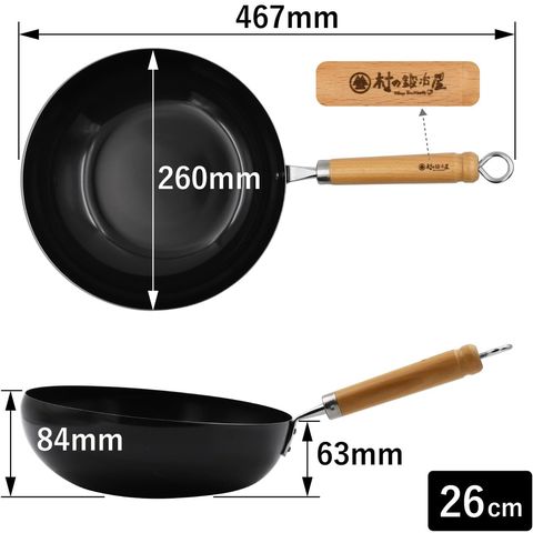 ■材質:本体:鉄(底の厚さ1.0mm・透明シリコン焼付塗装)、取っ手:天然木