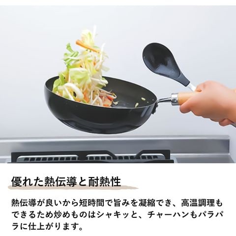 ■優れた熱伝導と耐熱性 熱伝導が良いから短時間で旨みを凝縮でき、高温調理もできるため炒めものはシャキッと、チャーハンもパラパラに仕上がります。