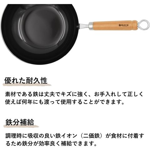 ■優れた耐久性 素材である鉄は丈夫でキズに強く、お手入れして正しく使えば何年にも渡って使用することができます。