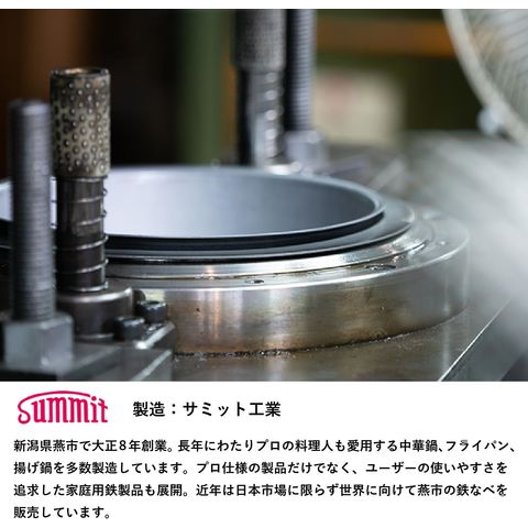 新潟県燕市で大正8年創業。長年にわたりプロの料理人も愛用する中華鍋、フライパン、揚げ鍋を多数製造しています。