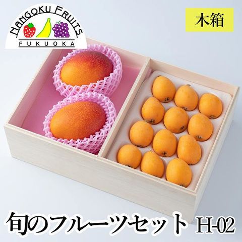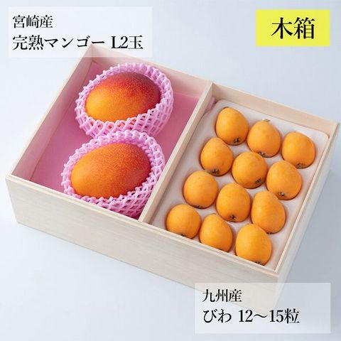 旬のフルーツセットH02(木箱)(宮崎完熟マンゴー・びわ)果物 詰め合せ ギフト 贈答 冷蔵便