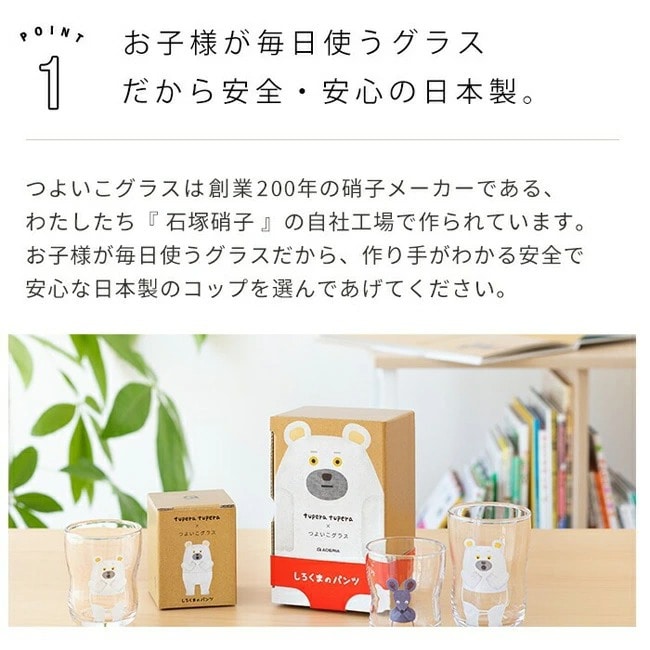 コップ つよいこグラス しろくまのパンツ M アデリア 【 tupera tupera × つよいこグラス M 】日本製 こども ガラス 子供 絵本 ツペラツペラ コラボ 持ちやすい 小さい 練習 割れにくい 幼児 かわいい イラスト キッズ プレゼント 出産祝い 誕生日 ADERIA