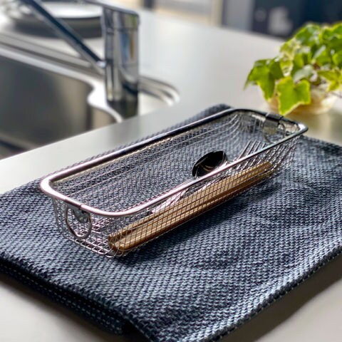 お箸やスプーン・フォークなど、細かいカトラリー類の水切りに最適!幅31.2cm×奥行9.8cmのスリムサイズでシンク横にもすっきり置くことが出来ます。