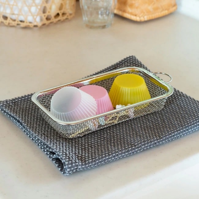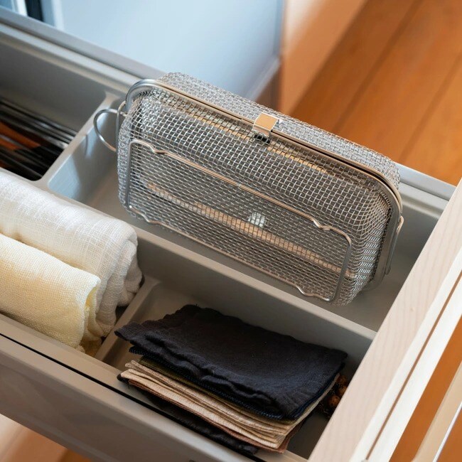 食洗機かご すっきり暮らす 食洗機かご フタ付き カゴ 留め具付 深め ステンレス 日本製 MM-700189 燕三条 18-8ステンレス かご コンパクト 水切りかご ザル 食器 水切り引っ掛け収納 食洗器対応 丈夫 サビにくい ビーワース 【送料無料】