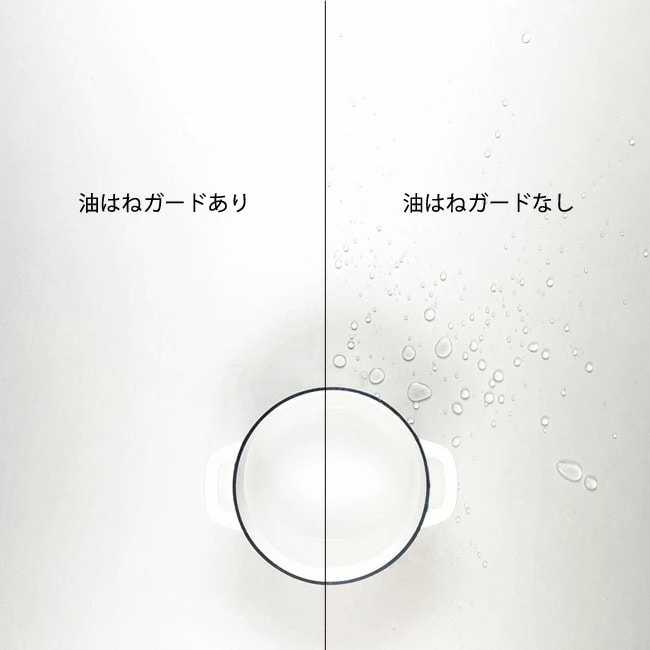 隙間を最小限に抑えた油はねガード。面倒な油汚れのお掃除を簡単に。