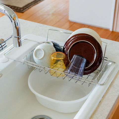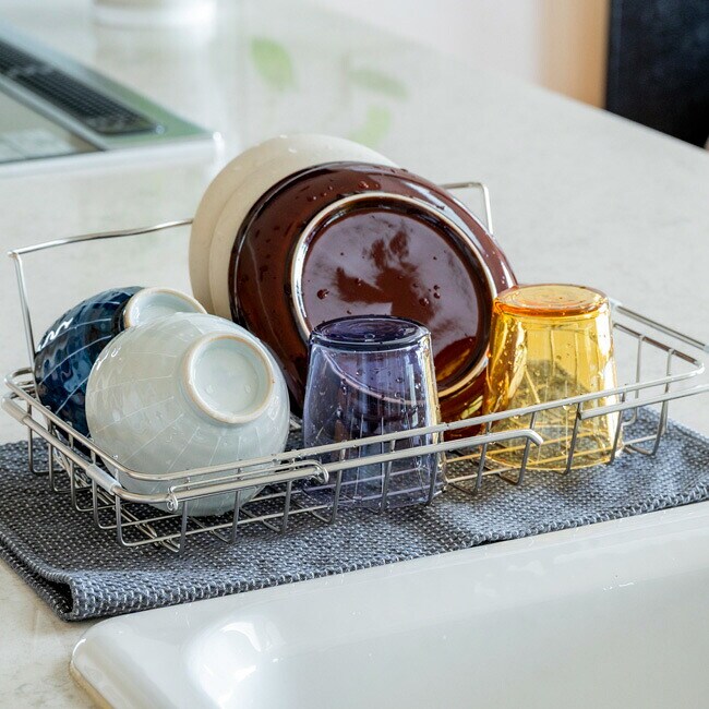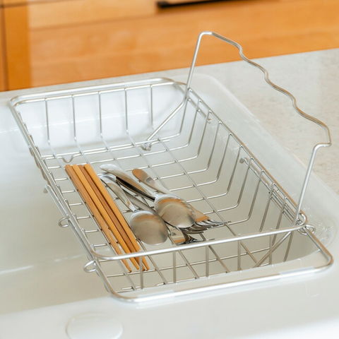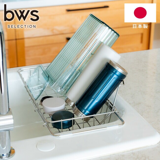 水切りラック すっきり暮らす 立て掛けられるシンク渡し水切り 日本製 MM-700205 燕三条 18-8ステンレス 浅型 脚付き 背もたれ 水筒 お皿 フライパン 水切りかご 丈夫 サビにくい ビーワース 【送料無料】