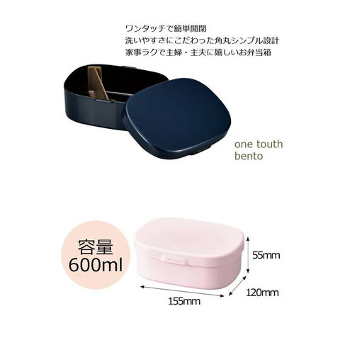 弁当箱 さっと洗えるお弁当箱M600 HAKOYA ワンタッチ 600ml 【ネイビーM】 たつみや 一段 弁当 シンプル 大 日本製 大容量 ランチボックス 7色展開 お弁当箱 スライド 斜め仕切り 1段 おしゃれ かわいい インスタ映え 電子レンジ対応 【送料無料】
