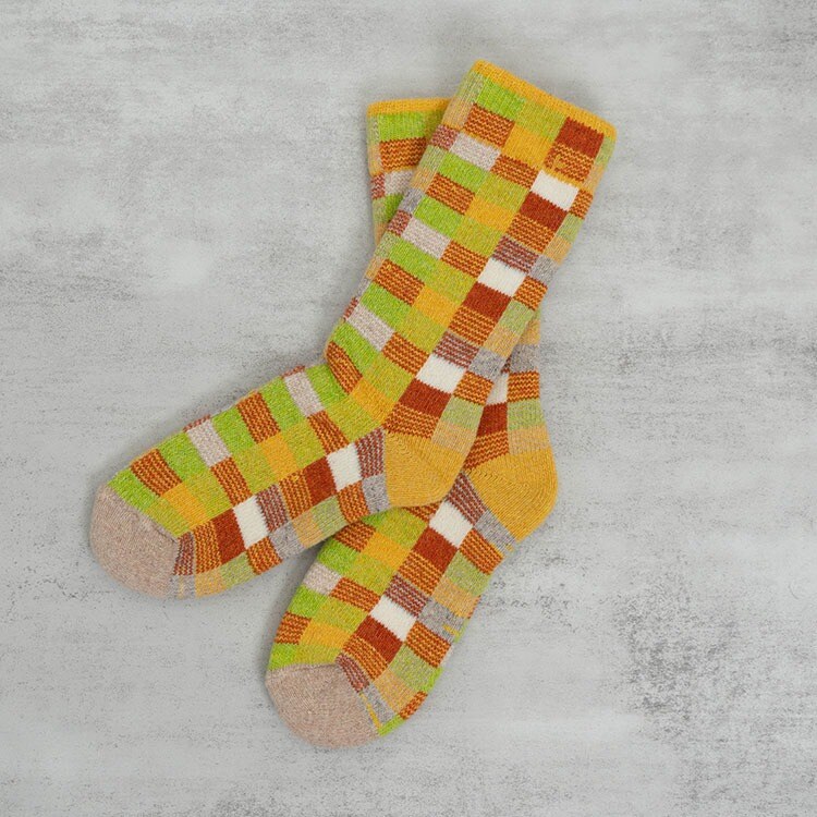 ALREQUIN(アルルカン)は「色とりどりの」や「「つぎはぎ」などと言った意味があるフランス語。その名の通り、思わず目を引いてしまう多色の配色は、カジュアルなスタイリングで活躍すること間違いなし。 暗くなりがちな冬のコーディネートに1つスパイスを加えるのにちょうどよいアイテムです。 H FOOTWEARならではの肉厚で柔らかな質感。柔らかいウールなので、チクチクが苦手な方にもおすすめ!(※個人差があります) |