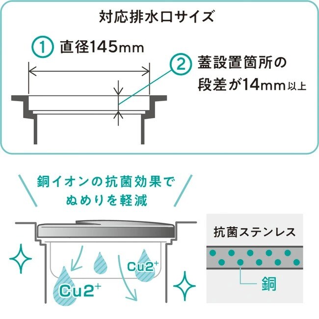 排水口カバー leye 抗菌ステンレス排水口カバー 日本製 ステンレス 銅 ぬめりにくい シンク 流し キッチン 台所 抗菌 銅イオン レイエ レイェ キッチン雑貨 排水溝 シンプル おしゃれ LES3213 【ゆうパケット送料無料】