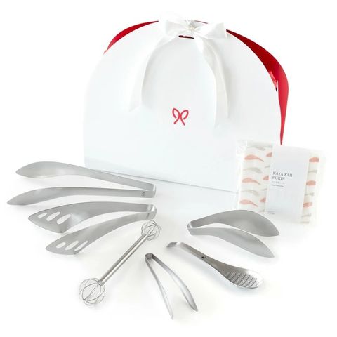 ギフトセット leye ハーフムーンセレクトセット キッチンツール6点セット 日本製 かや生地ふきん 1枚 付 トング スプーン 軽量マドラー 人気 結婚祝い 引っ越し祝い 新築祝い 母の日 プレゼント ギフトボックス 贈り物 かわいい オークス レイエ レイェ OS5504 【送料無料】