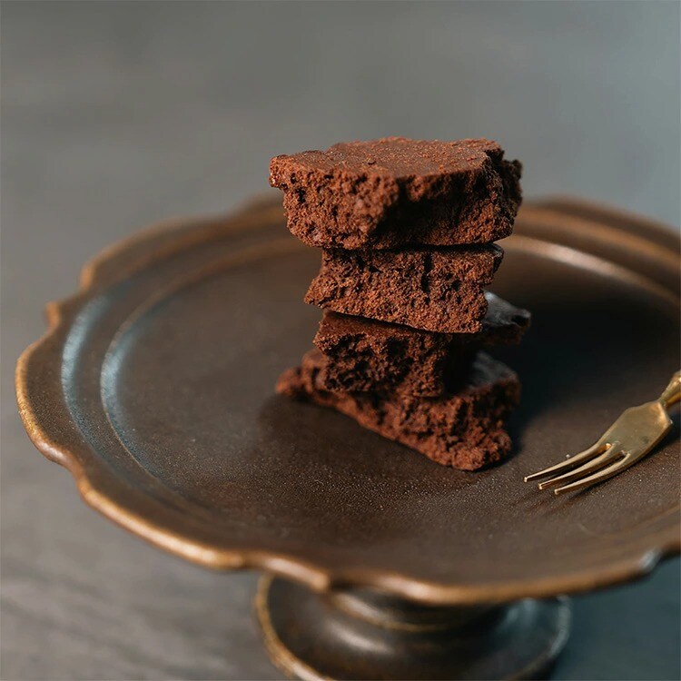 卵(国産)、チョコレート(カカオマス、砂糖、ココアバター、全粉乳)、米粉、グラニュー糖、マーガリン、ピュアココアパウダー/乳化剤、香料、アナトー色素、(一部に卵・乳成分・大豆を含む) |