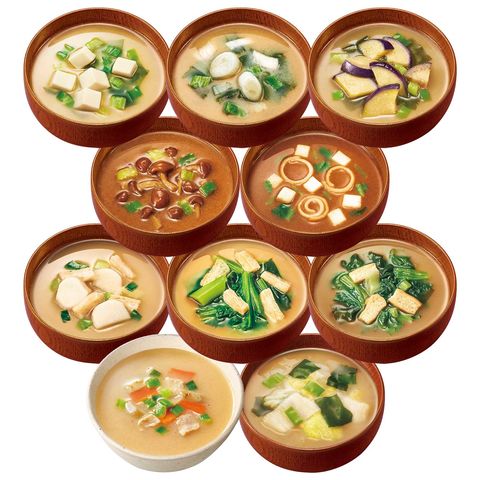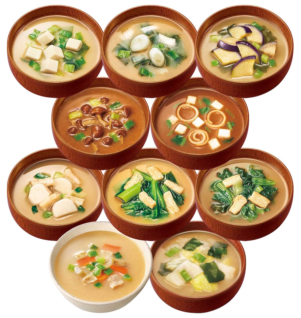 | ■セット内容 | ・いつものおみそ汁 なす、長ねぎ、とうふ、ほうれん草、なめこ(赤だし)、赤だし(三つ葉)、とん汁、白菜、里いも、小松菜 計10種類50食セット ※メーカー欠品等により、アソート内容が一部変更になる場合がございます。 |
