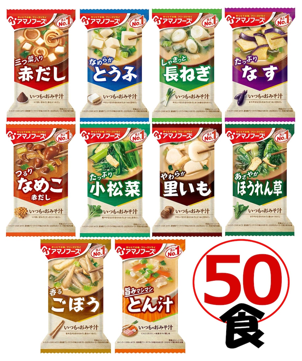 おまけ付!アマノフーズ いつものおみそ汁 10種類50食セット (フリーズドライ 即席 味噌汁) お試し オリジナルセット [I50][am]【送料無料】
