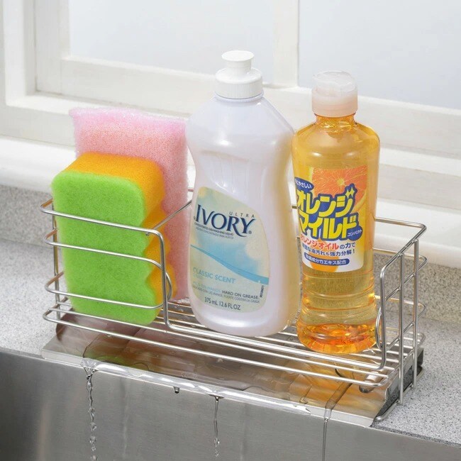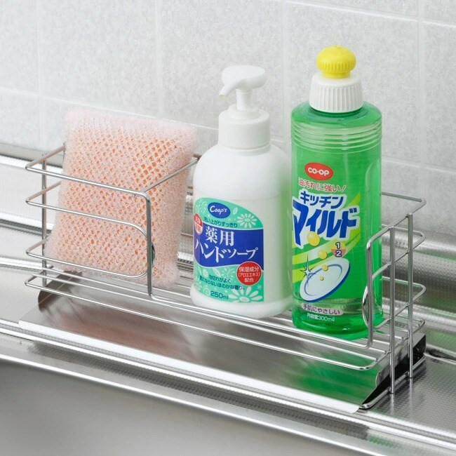 スポンジラック 斜めトレー付 洗剤 スポンジラック ステンレス 28565 水切りかご 燕三条 下村企販 日本製 斜め収納 シンク 食器用洗剤 スポンジ たわし 掃除 洗い物 斜めトレー 水切りトレー おしゃれ シンプル キッチン 台所収納 水切り籠 【 送料無料 】