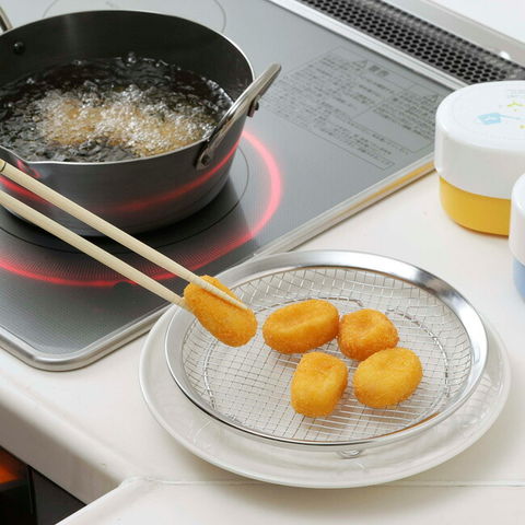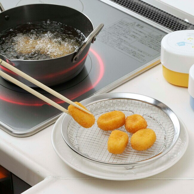 油切り 皿 カラッと油切り皿 直径19.6cm ママクック ざる 下村企販 調理器具 18-8ステンレス 日本製 水切り 油抜き 揚げ物 油切り 脚つき 水切り 湯通し ステンレスざる 40251 送料無料