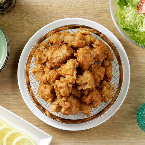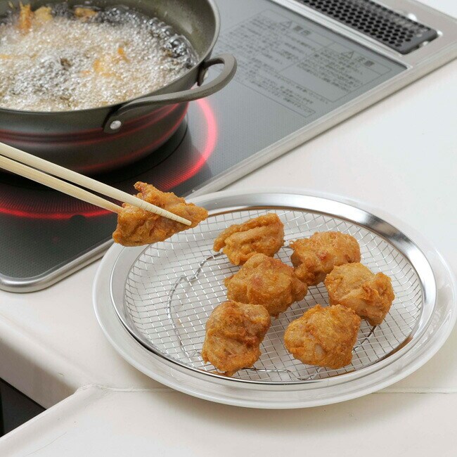 油切り 皿 カラッと油切り皿 【大】直径22.6cm ママクック ざる 下村企販 調理器具 18-8ステンレス 日本製 水切り 油抜き 揚げ物 油切り 脚つき 水切り 湯通し ステンレスざる 40252 送料無料