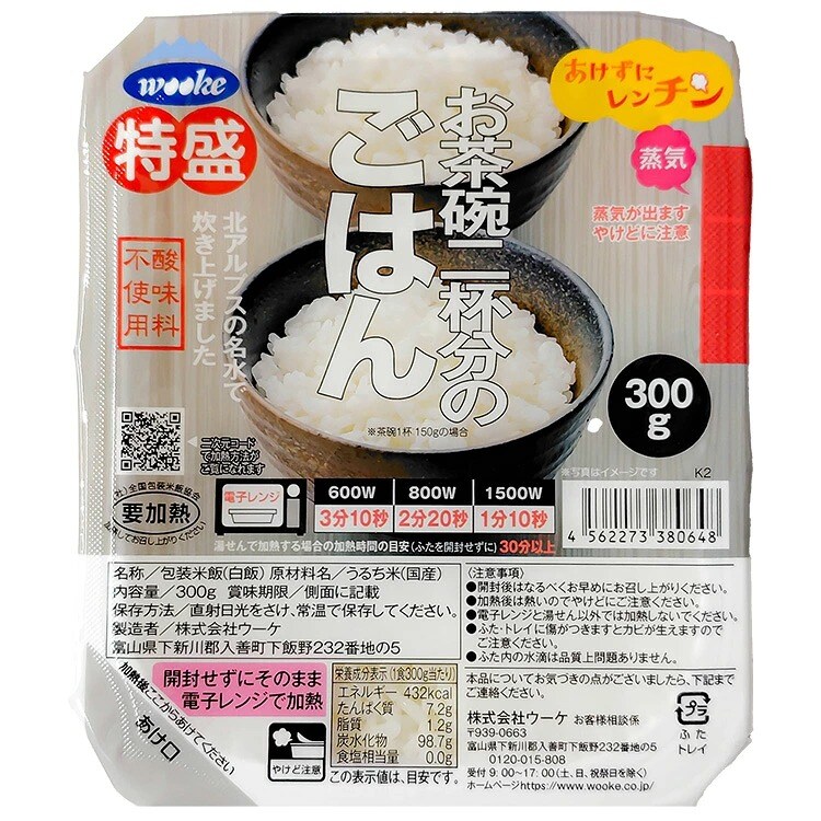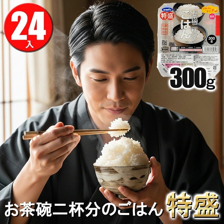 パック ご飯 ウーケ 特盛 お茶碗二杯分のごはん 300g×24個入 国産米 ケース販売 2杯 パックライス パックごはん ご飯パック ローリングストック 常備食 非常食 保存食 レトルトごはん レトルト食品 大盛 夜食 仕送り 電子レンジ 【送料無料】のレビュー
