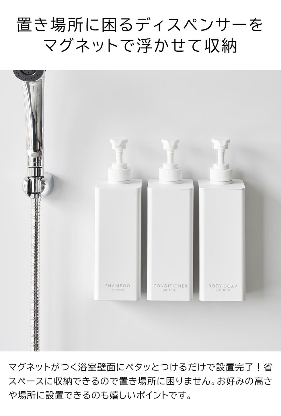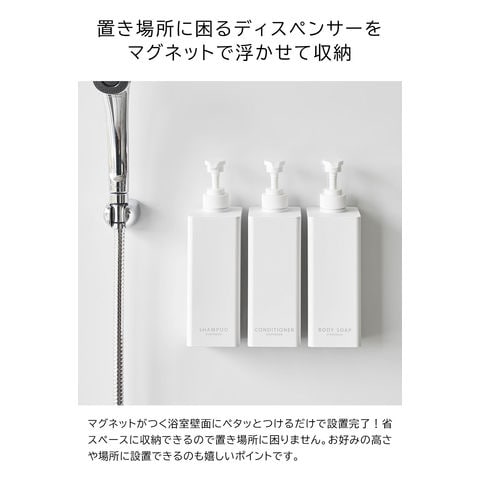 たっぷり洗剤が出るマグネットディスペンサー タワー 【シャンプー/ホワイト(01532)】 山崎実業 tower ホワイト ブラック 1532 1533 1534 1535 1536 1537 詰め替えボトル ポンプ 浮かせる シャンプー ボディーソープ 壁面 磁石 おしゃれ [MM1]