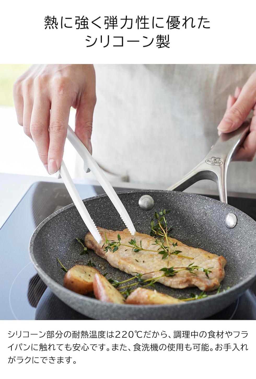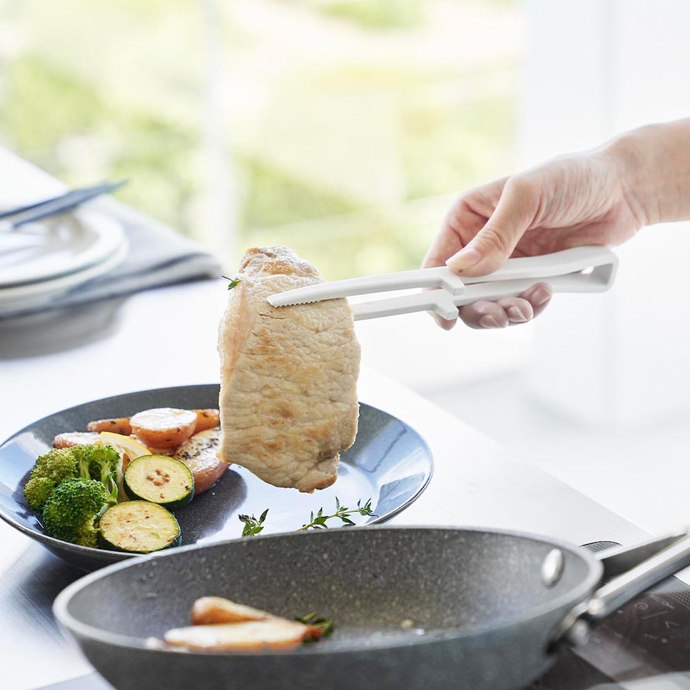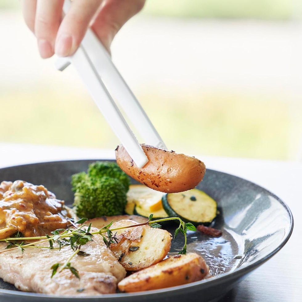 コンパクトサイズが丁度いい 持ち手に熱が伝わりにくく、お鍋やフライパンをキズつけないシリコーン製の菜箸トングです。 グリップは握りやすい太めの設計。繊細に食材がつかめるから、お弁当作りにも最適です。 調理中にそのまま調理台に置いても、先端が浮くので衛生的に使え、調理台も汚れません。 手軽で使いやすい小さめサイズ。食洗機でお手入れ可能です。 ![]() ![]() ![]() ![]() ![]() ![]() ![]() ![]() ![]() ![]() ![]() ![]() |