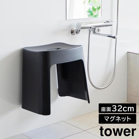 洗いやすいマグネット風呂イス タワー SH32 【ブラック(01654)】 山崎実業 tower 32cm ホワイト ブラック 1653 1654 バスチェア 風呂イス 風呂椅子 いす 椅子 壁面収納 浮かせる収納 引っ掛け 高さ32cm おしゃれ シンプル yamazaki [MM1]