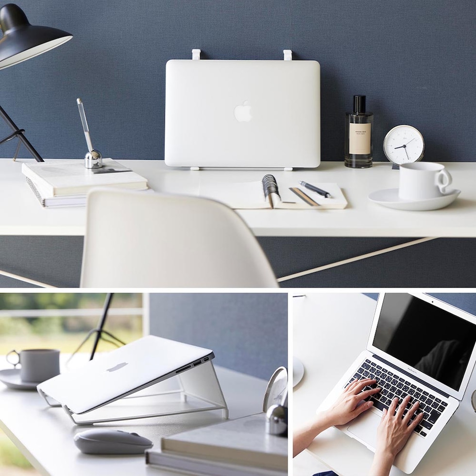 縦に置いてスリムに収納 縦置き・横置きどちらでも使用できるツーウェイタイプのノートパソコン&タブレットスタンドです。 縦に置けば、ノートパソコンを立てかけて収納できます。奥行きはたったの12cmでスリムに収まります。 また、タブレットスタンドとしても使用でき、キッチンカウンターや学習デスク、オフィスなど、様々な場所で使えます。 横に置けば、ノートパソコンの使いやすさがUP!20度の傾斜があるスタンドなので、画面の位置が高くなり、そのままタイピングもできるので、ラクにパソコン作業ができます。 熱に強く丈夫なスチール製のスタンドは、シンプルな形状で放熱もできるので、パソコンへの負担も減ります。 スタンド底面には、マウスや充電器、USBメモリなどの小物も収納でき、作業後はデスクをすっきりと片付けられます。 ![]() ![]() ![]() ![]() ![]() ![]() ![]() ![]() ![]() ![]() |
