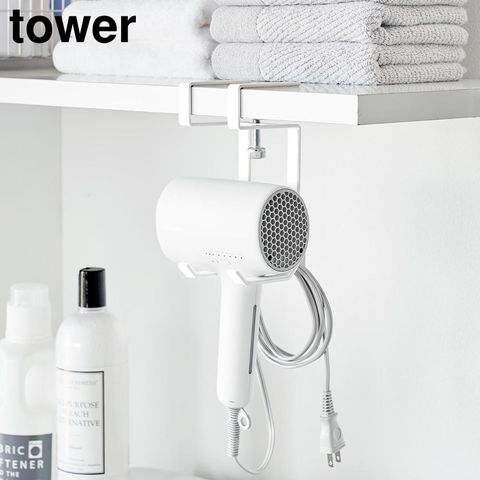 棚下ドライヤーハンガー タワー 山崎実業 tower 【ブラック(01641)】 ホワイト ブラック 1640 1641 ドライヤーホルダー ホルダー フック 浮かせる収納 コードハンガー コードホルダー 引っ掛け おしゃれ シンプル yamazaki タワーシリーズ[MM1]