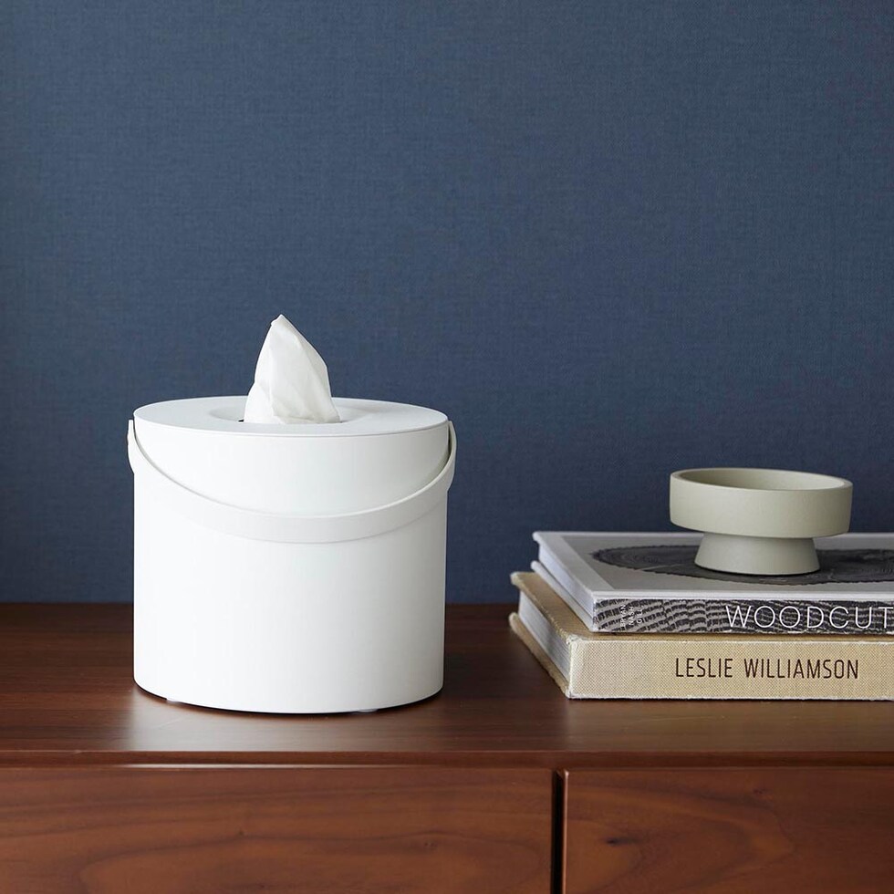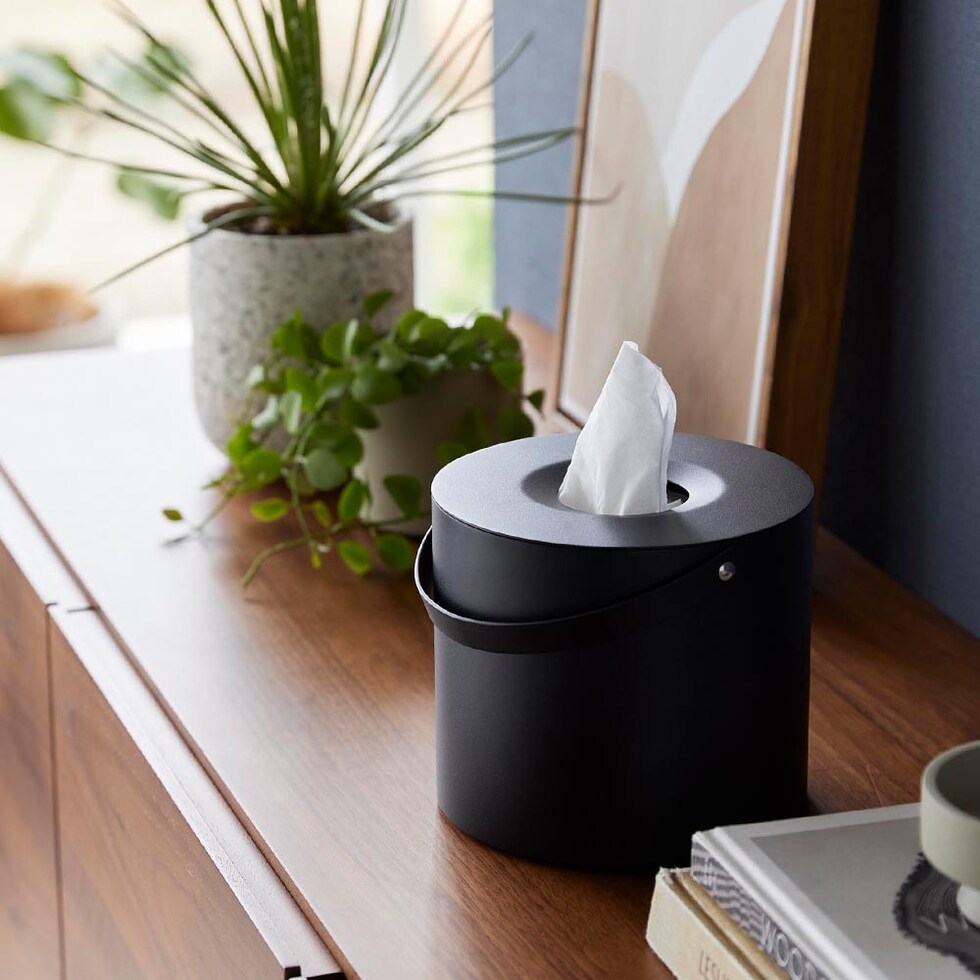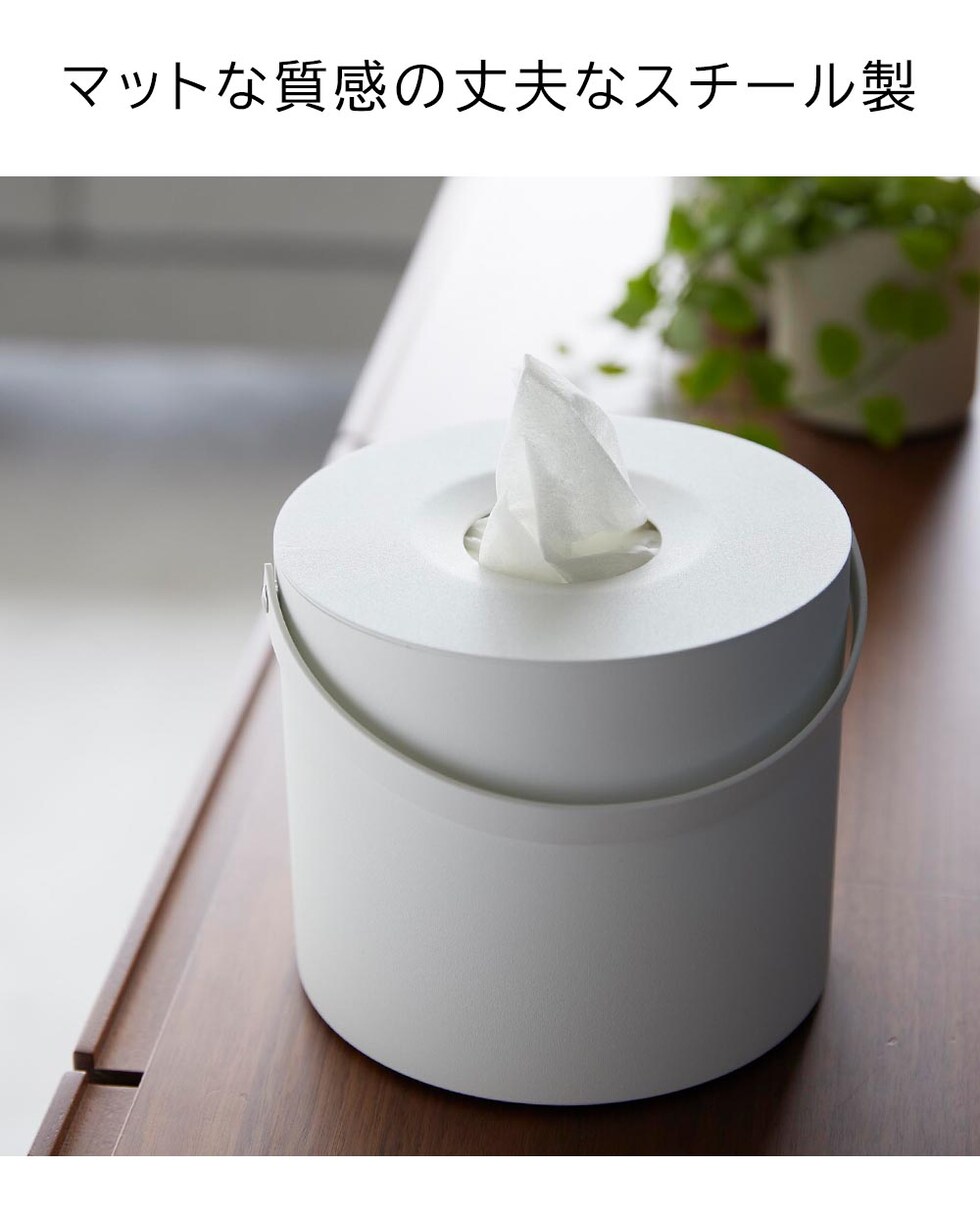 ハンドル付きティッシュケース タワー 山崎実業 tower 【ブラック(01704)】 ホワイト ブラック 1703 1704 ティッシュボックス ティッシュペーパー 丸型 持ち手付き 卓上 収納 おしゃれ シンプル スタイリッシュ yamazaki タワーシリーズ[MM1]