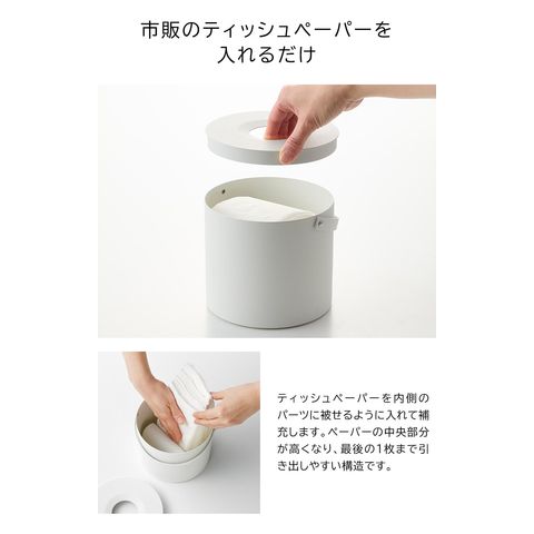 シンプルでスタイリッシュに リビングやダイニング、寝室などで、生活感を隠してインテリアに馴染むティッシュケースです。 ハンドル付きで持ち運びやすいから、必要な場所へ手軽に移動できます。アウトドアでの使用もおすすめ。 蓋を開けて、市販のティッシュペーパーを簡単に詰め替えられます。中のパーツでペーパーの中央に高さが出るため、最後の一枚まで取り出しやすい構造です。 ![]() ![]() ![]() ![]() ![]() ![]() ![]() ![]() ![]() ![]() ![]() |