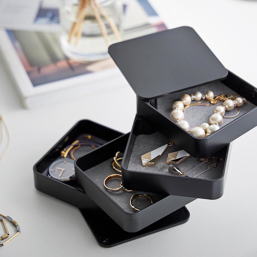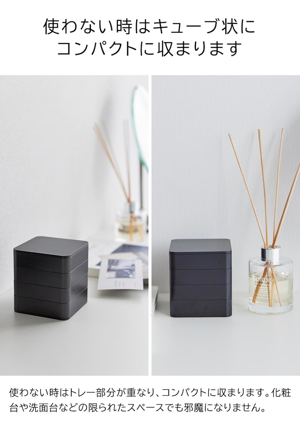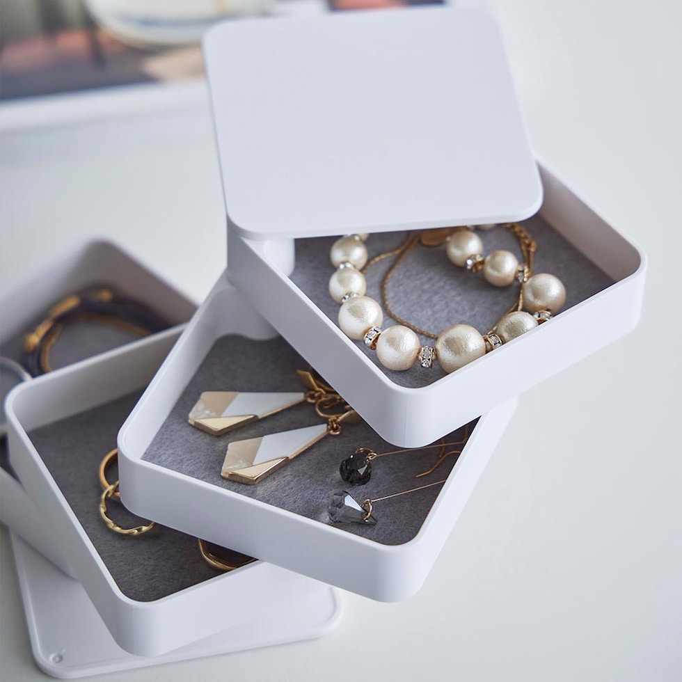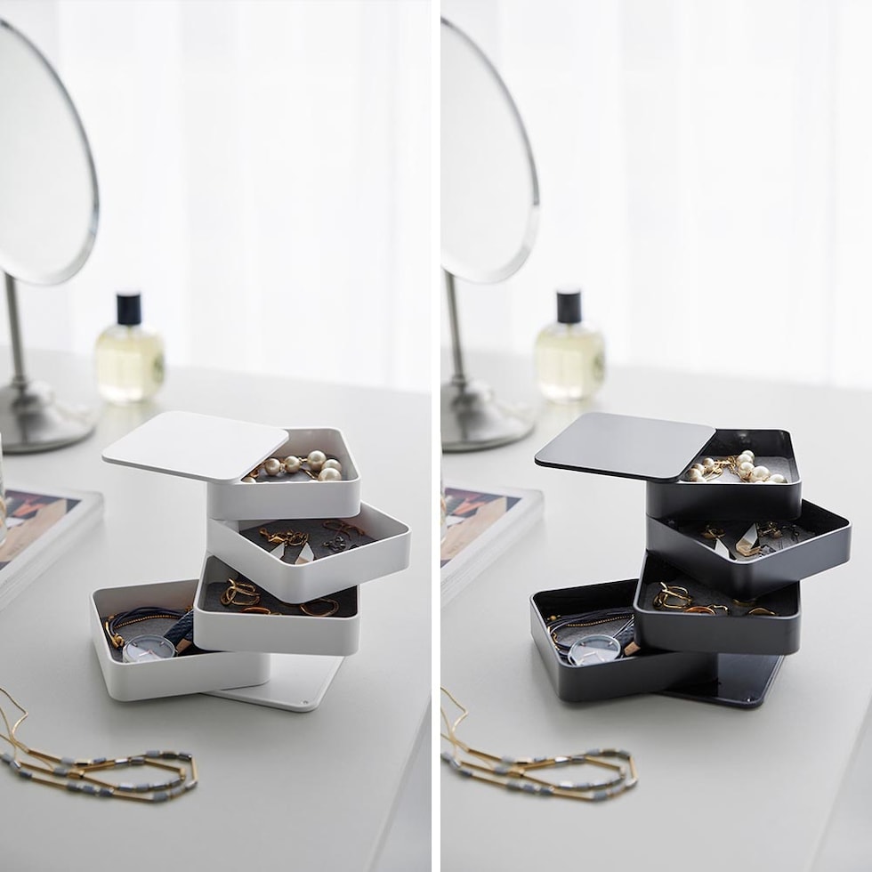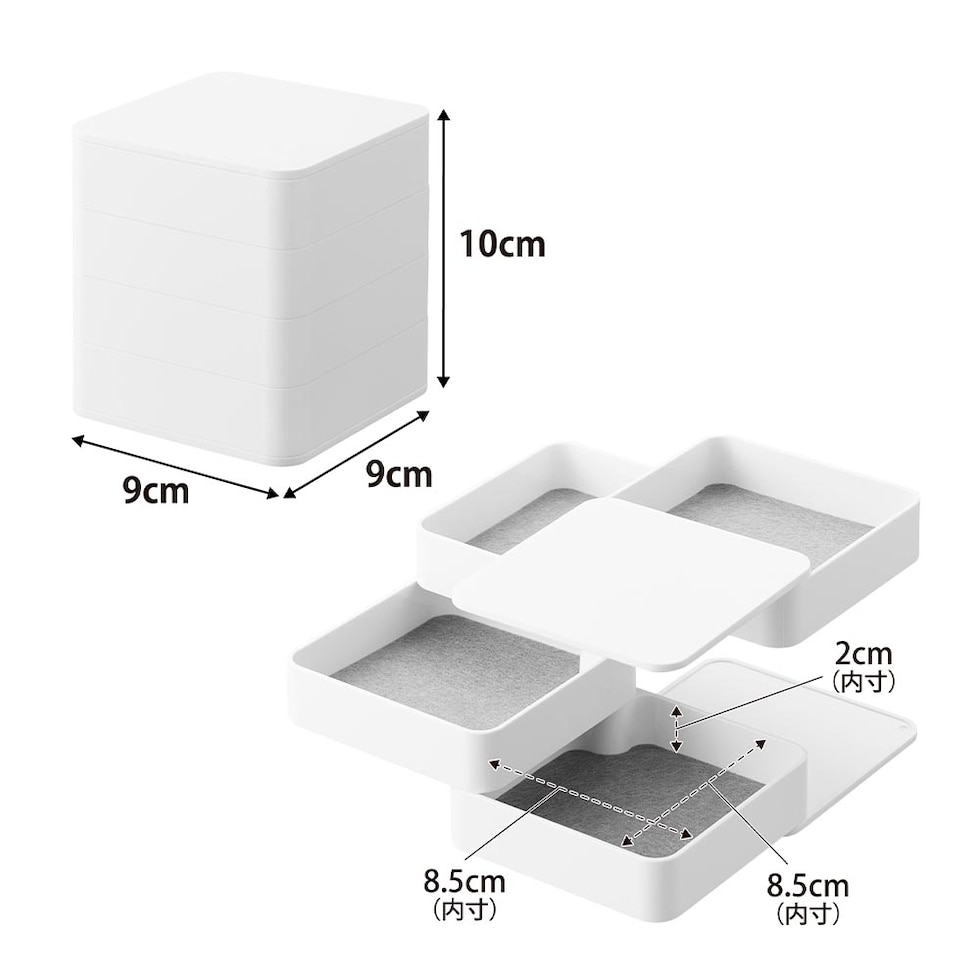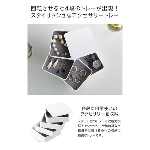アクセサリートレー タワー 4段 スクエア 山崎実業 tower 【ホワイト(01753)】 ホワイト ブラック 1753 1754 ジュエリーボックス ケース 小物入れ 収納 スライド 回転式 指輪 ネックレス コンパクト スリム おしゃれ シンプル yamazaki タワーシリーズ[MM1]