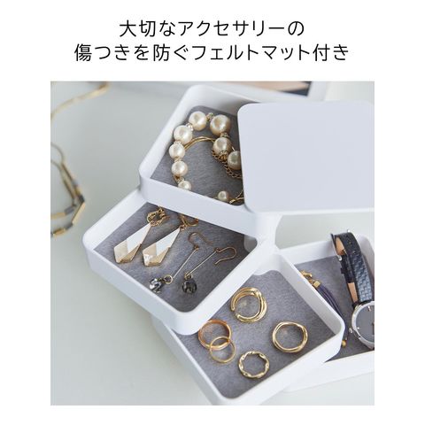 アクセサリー類を 回転式で取り出しやすい4段のスクエア型アクセサリートレーです。 アクセサリーや腕時計など、毎日身に着ける小物の収納に最適です。 回転式になっているので、必要な段のトレーをスライドさせれば取りたい物が簡単に取り出せます。使わない時はトレー部分を重ねればコンパクトに収納できます。 アクセサリーを傷つけにくいフェルトマット付き。 蓋付きなので、大切なアクセサリーをほこりから守ります。 ![]() ![]() ![]() ![]() ![]() ![]() ![]() ![]() ![]() ![]() ![]() ![]() |