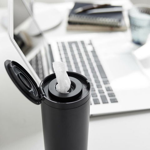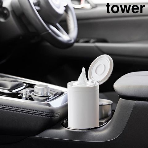ボトル型ウェットティッシュケース タワー 山崎実業 tower 【ブラック(01609)】 ホワイト ブラック 1608 1609 ティッシュケース ロール型 筒型 車用 車載 卓上 詰め替え ウェットシート収納 おしゃれ シンプル yamazaki タワーシリーズ[MM1]