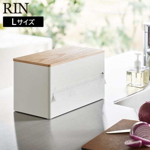 片手でカット隠せるキッチンペーパーホルダー リン L 山崎実業 RIN 【ブラウン(01644)】 ブラウン ナチュラル 1644 1645 ペーパータオル 大判サイズ 片手で切れる 隠す収納 キッチン収納 コストコ ウッド 木目 おしゃれ シンプル [MM1]
