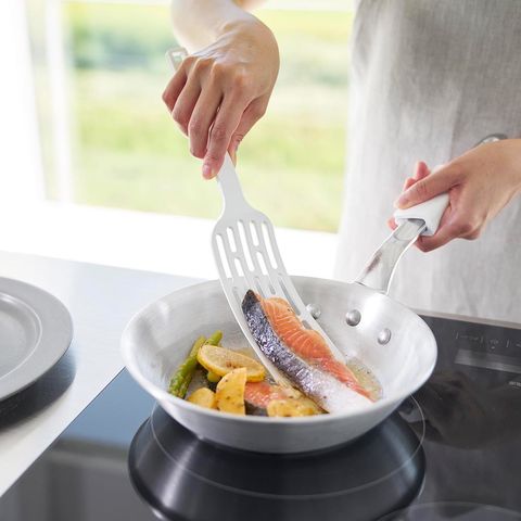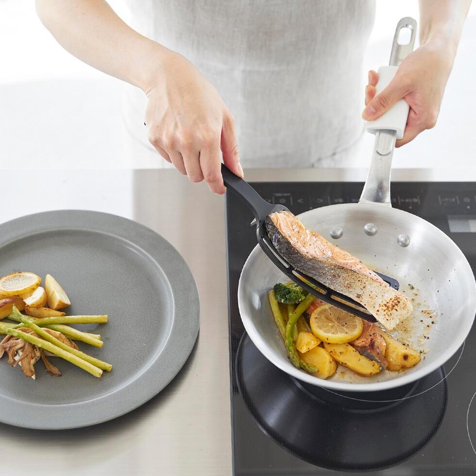 シリコーン製でしなやかなので、鍋やフライパンを傷つけず、フライパンと食材の間にサッと入り、スムーズにすくえます。